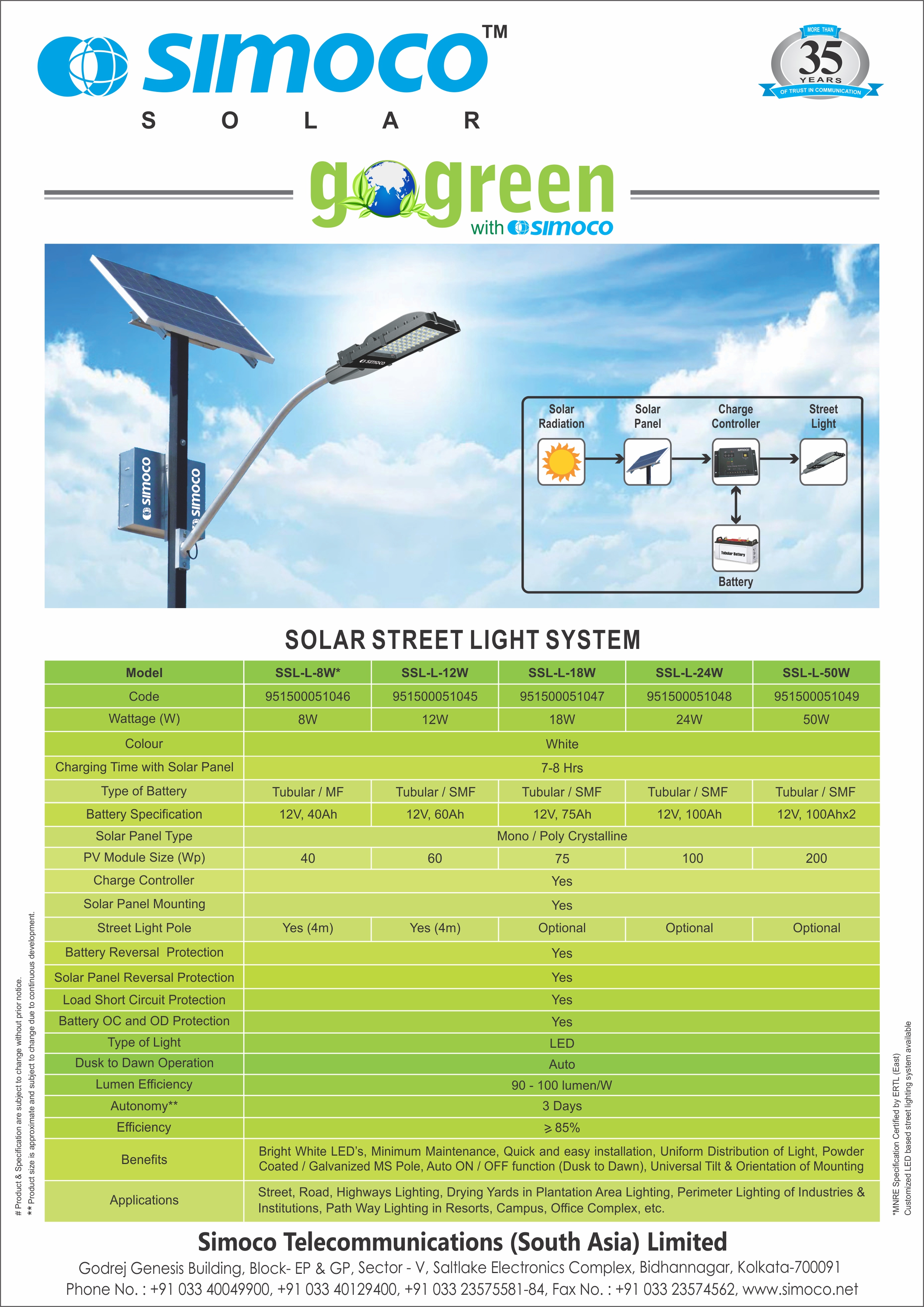 Simoco Telecommunications (South Asia) Limited, formerly known as Philips Telecommunication Industries Limited, a subsidiary of Philips Telecom worldwide, is a dynamic force in the Indian radio communication market. The company is known for providing innovative solutions and implementing turn-key projects with comprehensive range of high performance products, systems and solutions for organizations of every size. The company has a full fledged manufacturing and administrative office spread over nearly one lakh square feet in Sector-V, Saltlake Electronics Complex, Kolkata for manufacturing of different types of electronic products. More than 35 years of experience in different domain has enriched the company to provide effective solution for the valued customers. Manufacturing and after sales service are the two pillars of success for Simoco.